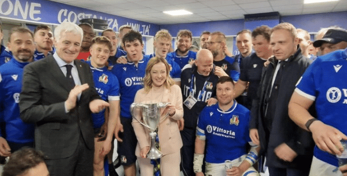 Sei Nazioni, Meloni festeggia con la squadra di rugby italiana la vittoria contro la Scozia