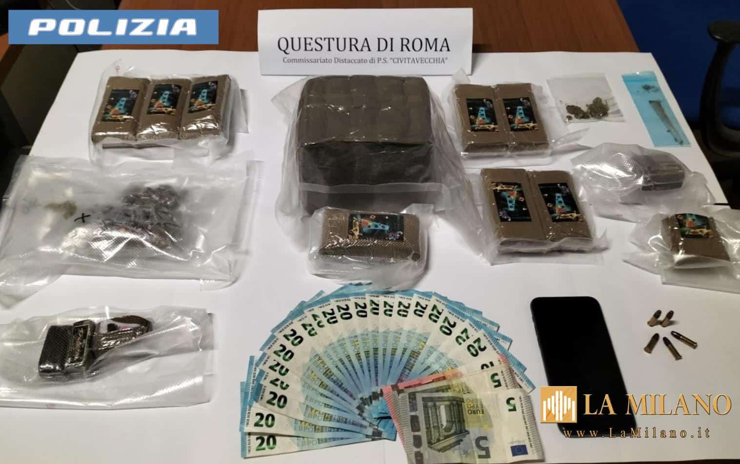 Sequestrati oltre 2 kg. di hashish e 5 proiettili calibro 22. La Polizia di Stato ha tratto in arresto un cittadino albanese di 26 anni in quanto gravemente indiziato del reato di detenzione ai fini di spaccio di sostanze stupefacenti. Prima di essere fermato, il 26enne si è dato alla fuga in auto, sbarazzandosi dal finestrino di uno zaino e una scatola che contenevano oltre due chili di hashish. Inoltre sono stati ritrovati anche 5 proiettili calibro 22.