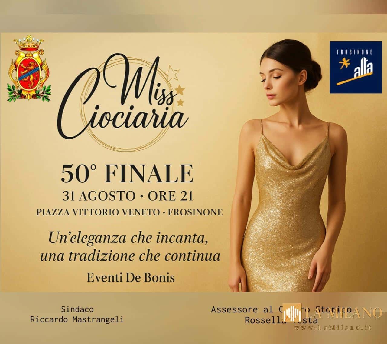 Frosinone celebra i 50 anni di Miss Ciociaria: domenica 31 agosto in Piazza Vittorio Veneto si terrà la finale 2025 con madrine d’eccezione, ospiti dal mondo dello spettacolo e il centro storico protagonista di una serata di bellezza e tradizione. …CONTINUA A LEGGERE