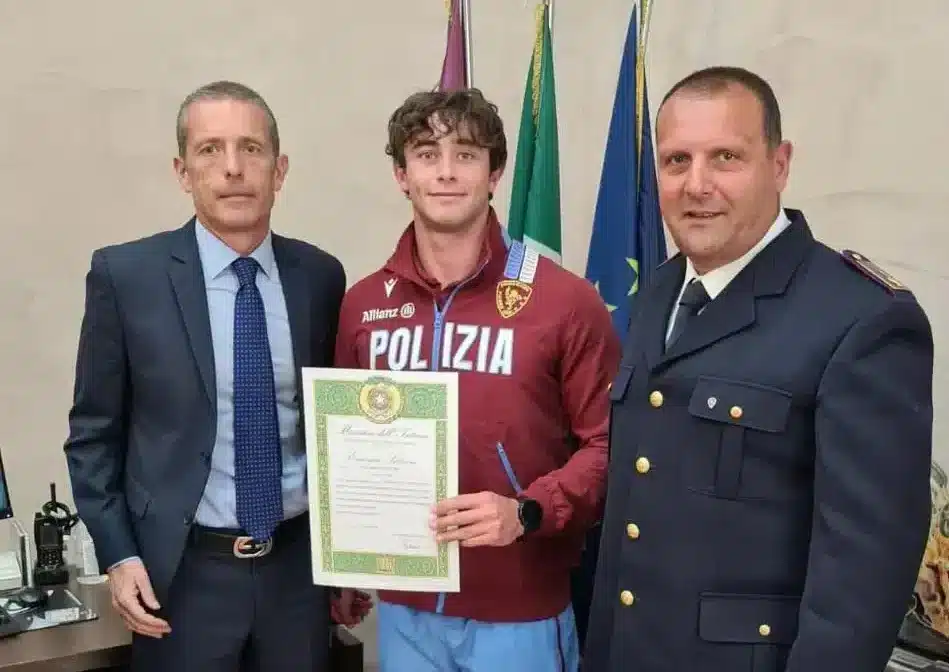 Nel corso della mattinata di giovedì 18 aprile il Questore di Latina Raffaele Gargiulo al termine di una sobria cerimonia ha premiato l’Agente della Polizia di Stato Gabriele Casadei, accompagnato dal responsabile tecnico del settore canoa Vice Sovrintendente Silvio La Macchia, per gli eccellenti risultati sportivi conseguiti nel corso dei campionati mondiali U23 di canoa che si sono tenuti a Montemor (Por).