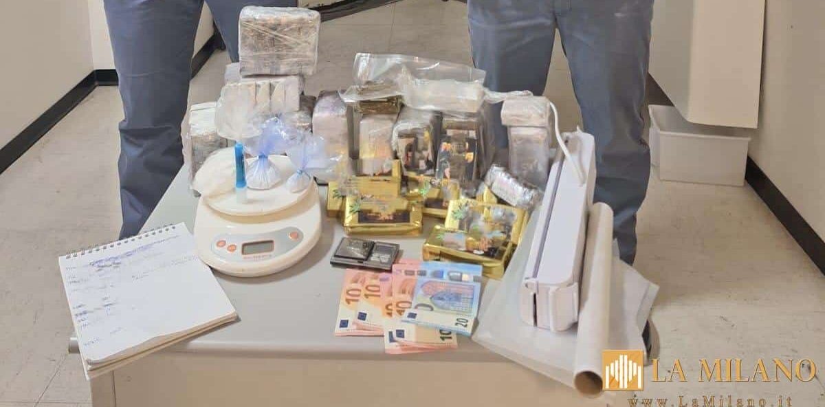 Gli agenti lo hanno fermato per un controllo di polizia, accompagnandolo fino all’uscio. All’interno dello scatolone, dietro l’imballaggio e l’apparente innocuità di una borsa frigo, erano conservati — “ghiacciati” e mescolati con polvere di caffèoltre cinque chili di hashish suddivisi in panetti dal classico taglio da un etto.