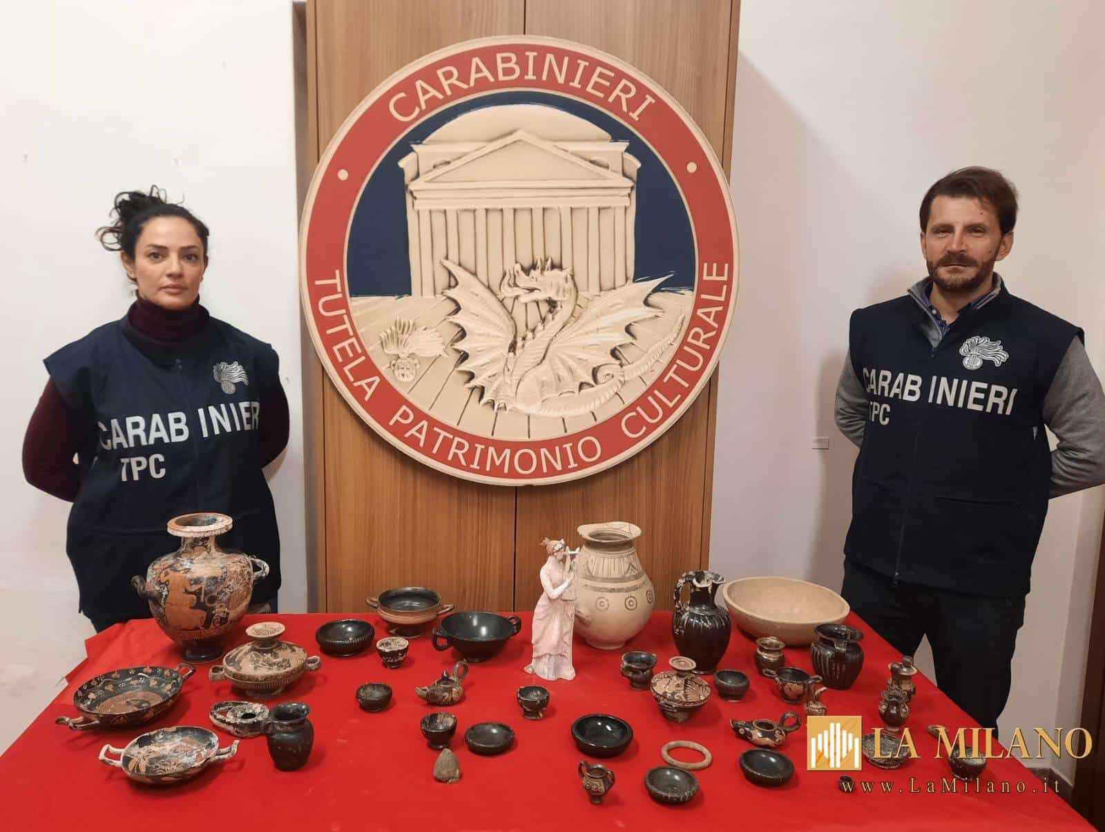 I Carabinieri del Nucleo Tutela Patrimonio Culturale di Bari hanno eseguito in varie località della Puglia e del Lazio un’ordinanza di applicazione di misure cautelari personali emessa dal GIP del Tribunale di Bari nei confronti di 4 soggetti a vario titolo ritenuti responsabili di associazione a delinquere finalizzata alla ricettazione ed esportazione illecita di reperti archeologici e numismatici.